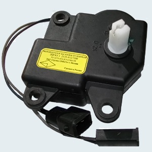 Рассмотрим вариант «дует только холодный воздух». Сам регулятор ломается очень редко, я бы даже сказал очень, очень редко. В старых автомобилях стоят пластмассовые заслонки, но последнее время и они встречаются крайне редко. Рассмотрим самый распространенный 99% вариант. Печка нового образца, сломался моторедуктор. Сам моторедуктор ремонтировать бесполезно, надо покупать новый. (фото снизу)